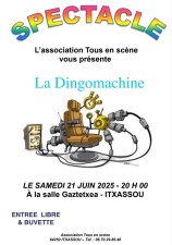 L'association Tous en scène organise un spectacle "La dingomachine" le samedi 21 juin 2025 à 20h00 à la salle Gaztetxea.